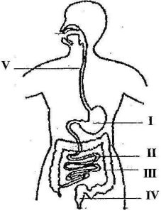 (d) The diagram below illustrates the digestive system in humans.